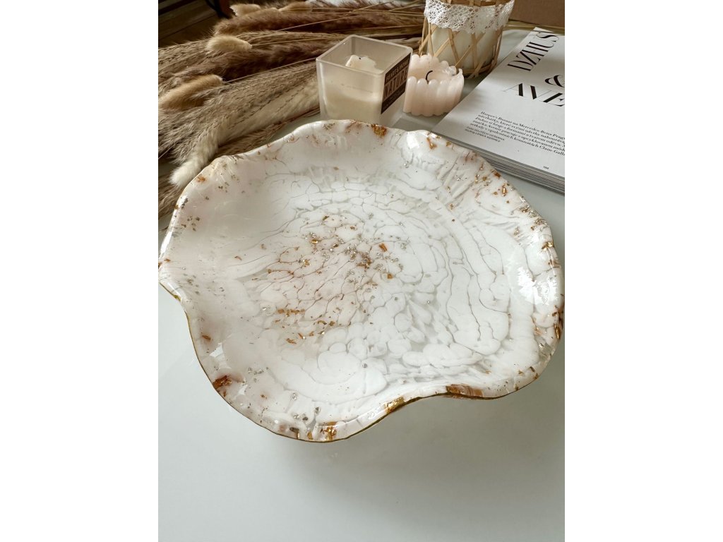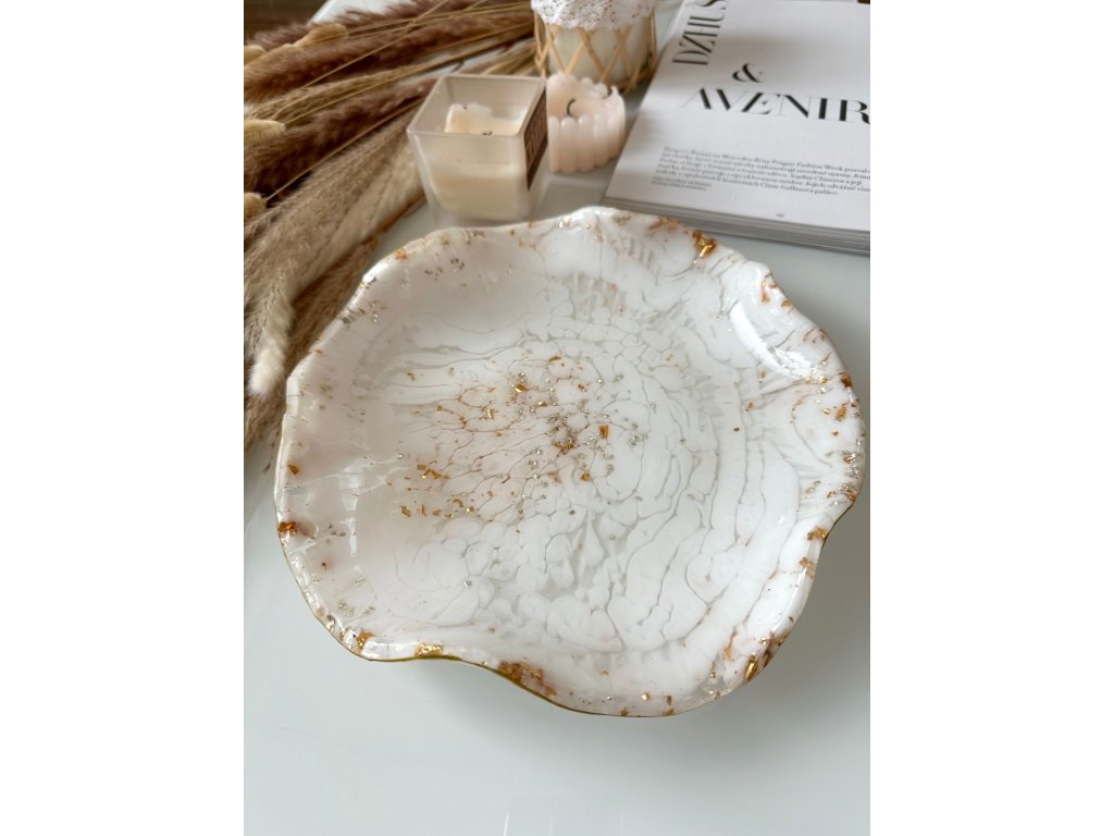 Dekorativní miska na ovoce a cukrovinky z epoxidové pryskyřice „bílá + zlatá
